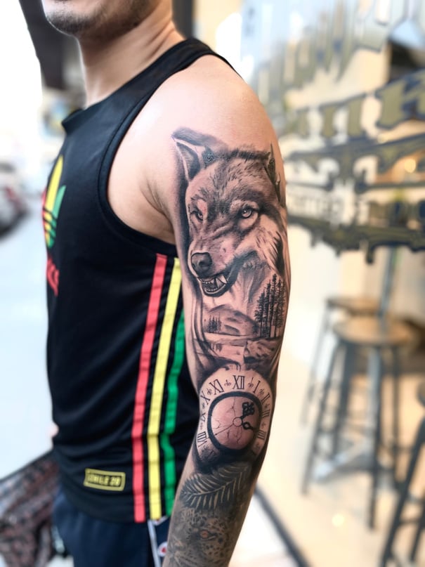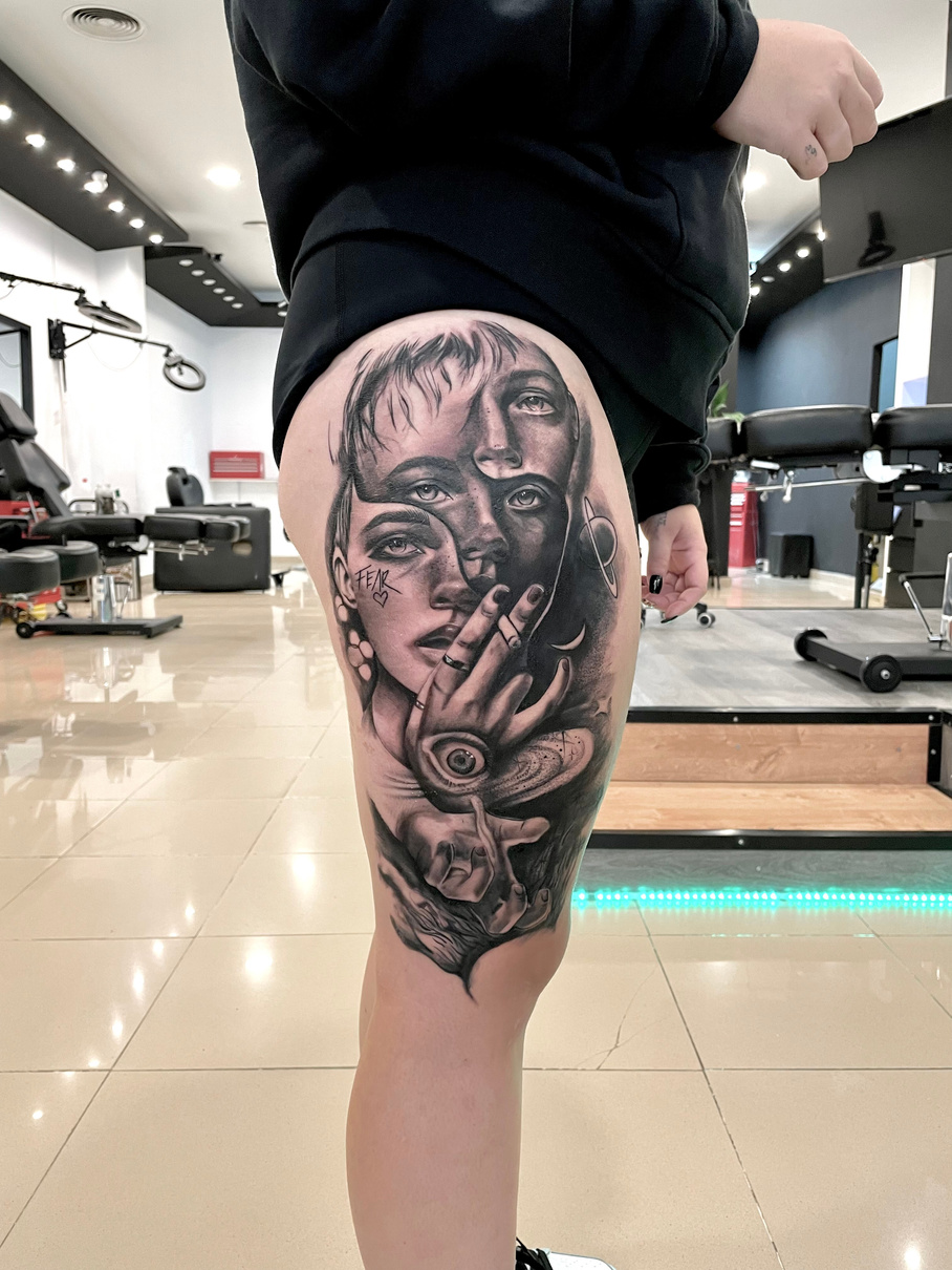 "Cumplió desde la fachada con mis expectativas, el local es precioso, l@s tatuador@s muy higiénicos y muy profesionales, en la sección de barbería un 10, muy buenos profesionales y en la recepción un trato excepcional, resolviendo cualquier duda al momento. En general súper contento, lugar innovador y donde se respira muy buen ambiente y mucha profesionalidad"
